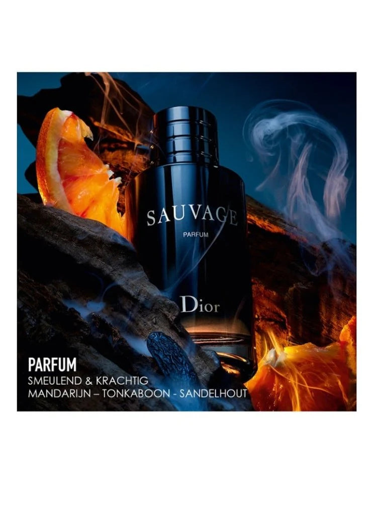 Dior Sauvage Parfum est une interprétation plus profonde et mystérieuse de l’iconique Sauvage. L’éclat de la bergamote de Calabre et de la mandarine ouvre sur un accord lumineux, rapidement réchauffé par le bois de santal crémeux et la cardamome épicée. En fond, la fève tonka suave se mêle à l’encens et à la vanille, créant un sillage opulent et envoûtant. Un parfum pensé pour l’homme qui souhaite exprimer sa force intérieure avec une élégance affirmée.