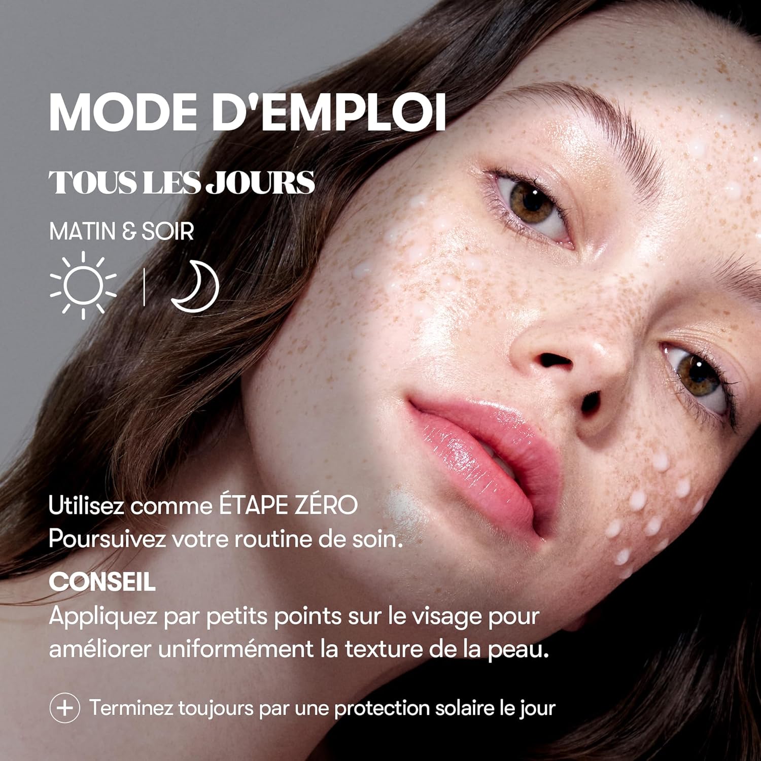 Public : Unisexe – Peaux matures, peaux normales, mixtes, grasses et sèches (peut convenir aux peaux sensibles si bonne tolérance aux spicules ; picotements possibles) – texture irrégulière, pores visibles, manque d’éclat, peau rugueuse/cellules mortes.